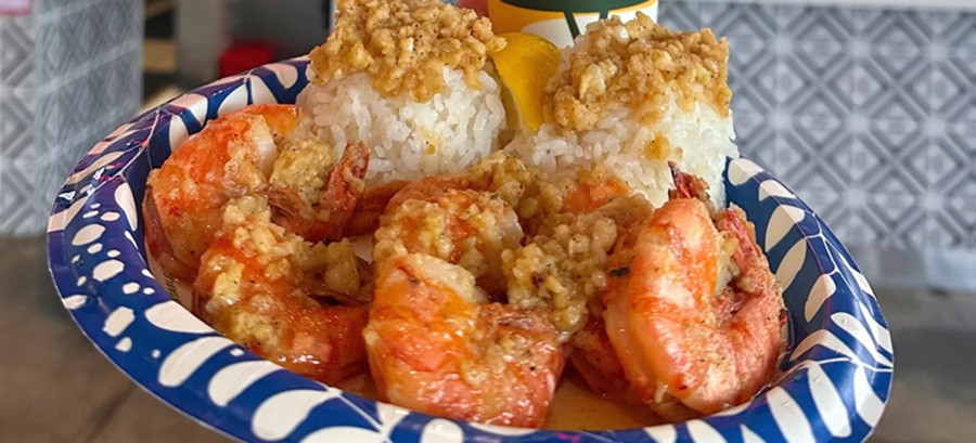 H Mart カカアコ店にてジョバンニの名物ガーリックシュリンプ昼食